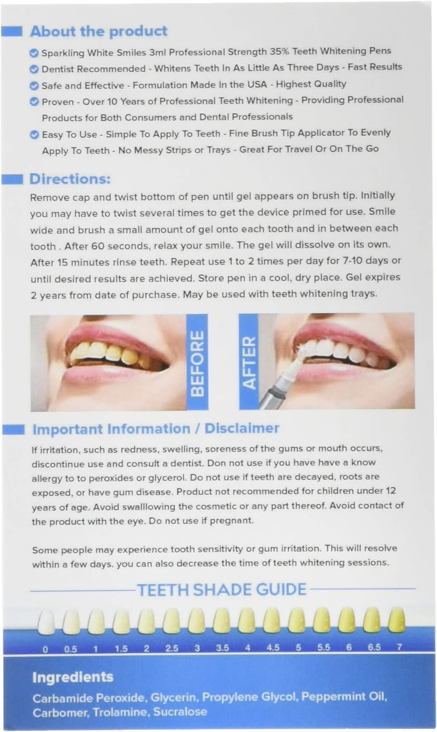 The Teeth Whitening Pens (3 Pack) are manufactured in the USA, ensuring high-quality standards are met. The formulation is made using the highest quality ingredients, and the product has been proven effective over 10 years of professional teeth whitening. With a track record of providing professional products to both consumers and dental professionals, Sparkling White Smiles is a brand you can trust.